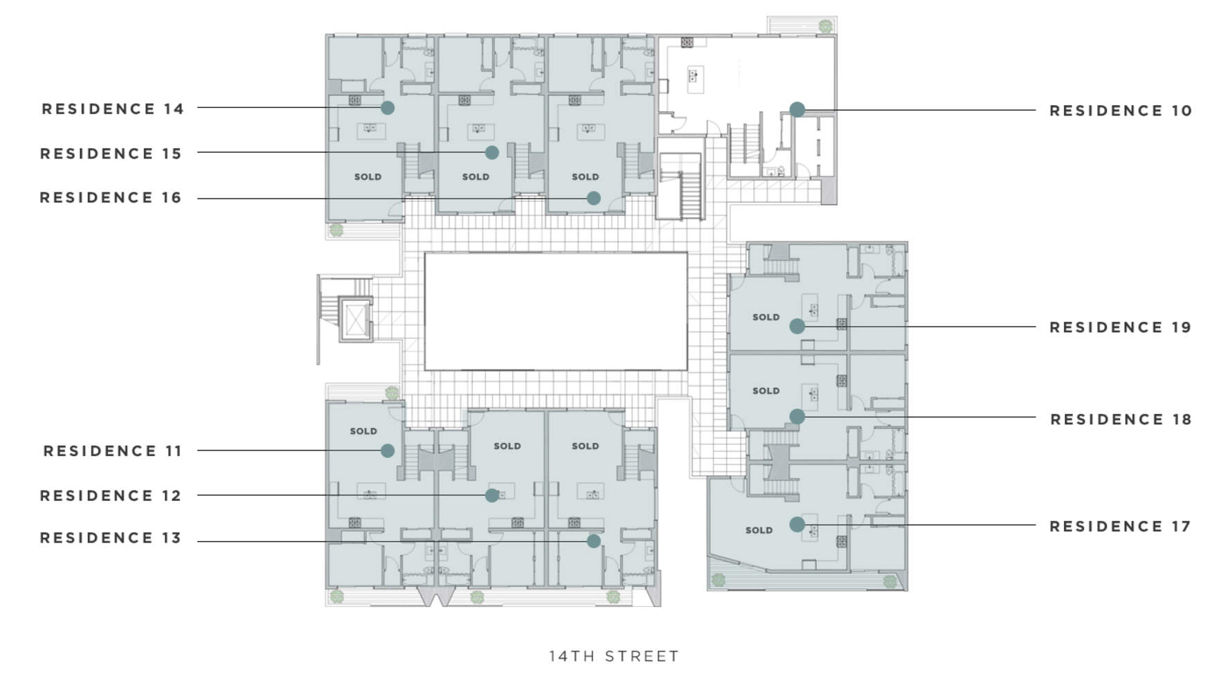 Nine single-story flats comprise AIRE’s first level featuring 2-bedrooms, 2-baths and expanded outdoor living areas that coordinate fluently with the central communal courtyard. Impeccably designed, light-filled interiors feature rich, subtle details that elevate the living experience, from the thoughtful placement of clerestory windows to the intuitive functionality of the open, chef-caliber kitchen.