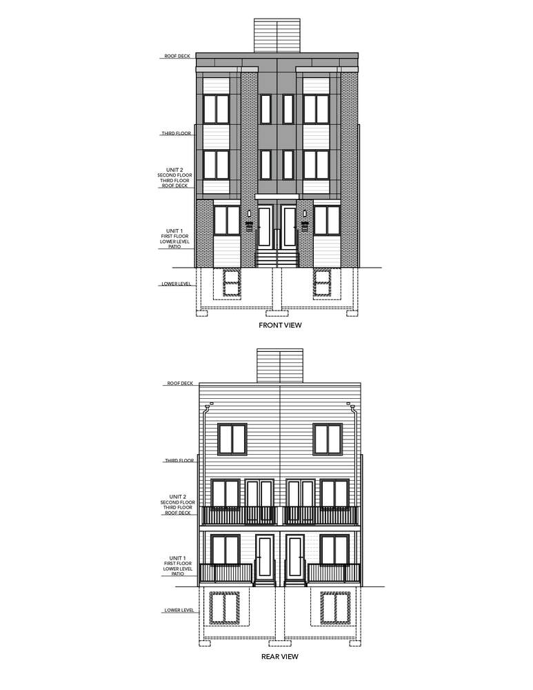 Both Unit 1 floor plans are 3 Bedroom and 3 Bath homes with a spacious private Patio. This 3 Bedroom home includes a lower level featuring a Master Suite with two generous closets and a designer Master Bathroom with a glass enclosed walk-in shower. Looking for a view of the city? Both Unit 2 floor plans are 3 Bedroom and 3 Bath homes with a grand Roof Deck with views of the stunning Philadelphia skyline. This floor plan offers an open floor plan Kitchen and Living Area featuring a designer L-shaped Kitchen with a breakfast bar that comfortably seats three guests. All baths include curated designer packages with luxe tile.