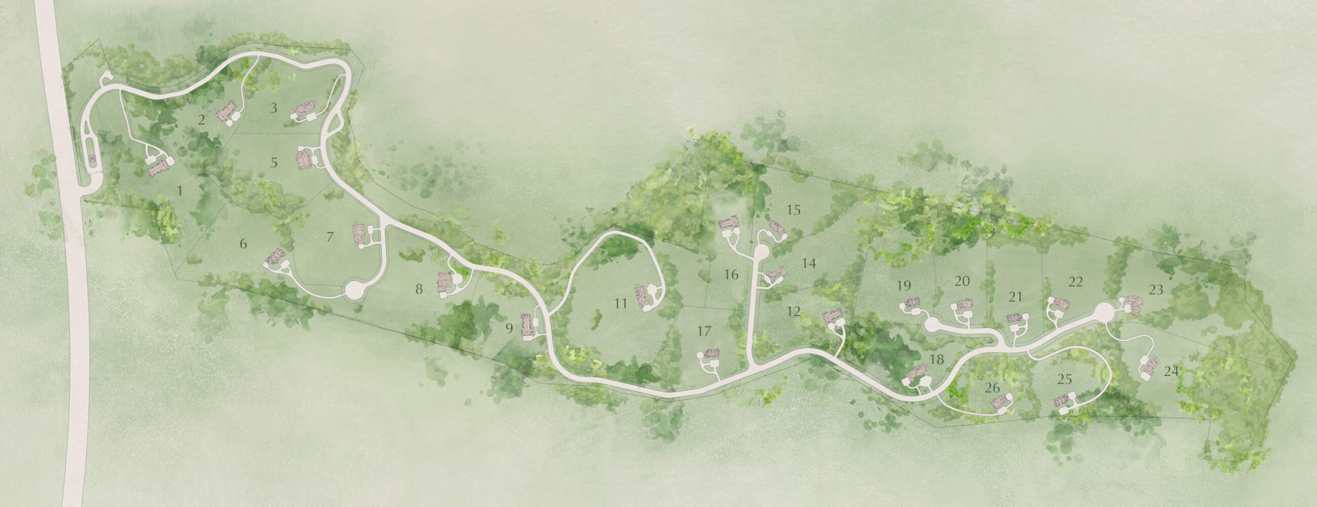 Each estate is carefully sited on a two- to five-acre plateau designed to optimize the sightlines of the Hudson River, neighboring castles, and the Palisades and Pocantico Hills.