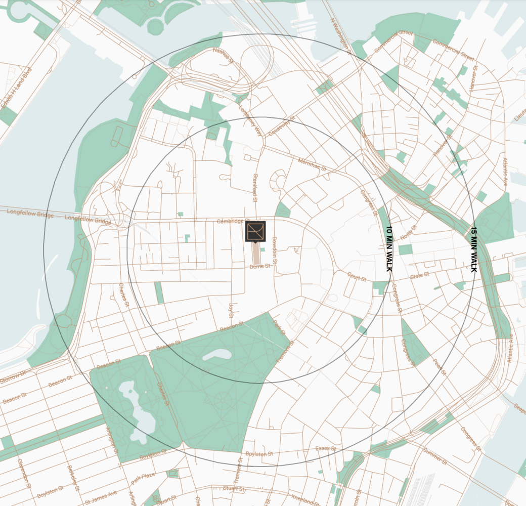 Among the most historic, picturesque, and prestigious of Boston’s neighborhoods, Beacon Hill is also the ideal community for active, contemporary living. In addition to a vibrant array of shops, cafés, and restaurants along nearby Charles Street, outdoor enthusiasts have Boston Common just a few minutes’ walk away. The city’s financial district is less than 15 minutes by foot, and even shorter by bike. Logan International Airport is a convenient 10-minute drive away for those who travel frequently.